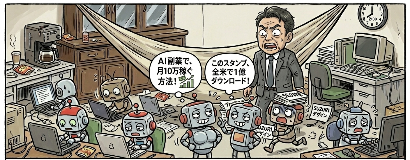 最後に。 戦略を練りすぎて、現在私の脳の稼働率は0.2%くらいです。 明日からは、この絞り出した戦略に基づいて**「どのAI副業が一番マシなのか」**を順次公開していきます。