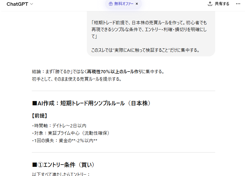 ChatGPT「やるならここだが非推奨。今日はノートレが最適解」